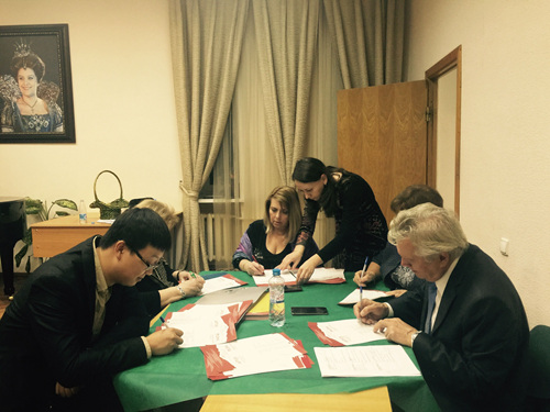 2015年11月15日---11月24日,我系西洋歌剧教研室副主任郭江滨老师受邀赴俄罗斯参加中俄艺术家“丝绸之路”欧亚艺术节,并代表唯一中方声乐歌唱家在艺术节开幕式上演唱,广受好评,被欧亚艺术节组委会授予“丝绸之路”中国文化推广大使称号及证书。郭江滨老师还受邀担任该国际声乐比赛的评委评分工作。