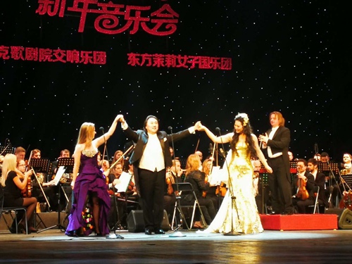 2017年12月31日 晚八点在四川省锦城艺术宫,歌剧合唱系系主任男高音歌唱家唐竹雅教授,应捷克国立歌剧院交响乐团,东方茉莉女子国乐团的邀请,参加了2018新年音乐会。 音乐会上唐竹雅教授演唱了世界名曲意大利民歌《Funiculi—Funicular 》,还与捷克著名女高音歌唱家,莱赫洛娃.玛尔塔;中国东方茉莉女子国乐团团长女高音歌唱家马渲子女士共同合作演唱了《Time To Say Good bye》巜我爱你中国》等经典名曲。 音乐会上我系唐竹雅教授用歌声送去了川音教师对全川全国人民的新年祝福,展示川音的声乐演唱水平,获得业内人士和媒体观众的广泛好评!