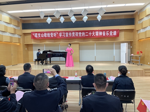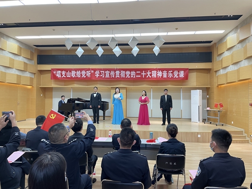 10月27日下午,声乐歌剧学院党委与四川省公安厅队伍建设处党支部联合开展“唱支山歌给党听”学习宣传贯彻党的二十大精神主题音乐党课,用艺术的形式拓展学习载体、浓厚学习氛围、提升学习效果。