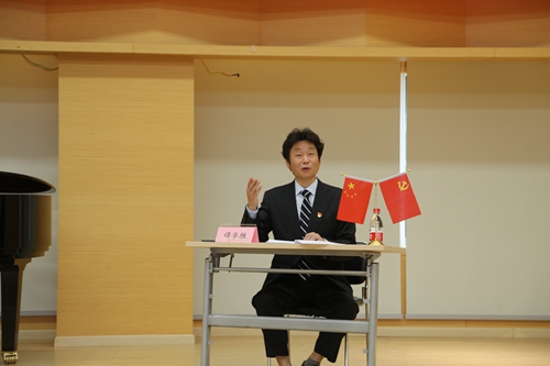 主题音乐党课上,我院党委书记、院长谭学胜教授以《唱支山歌给党听》这首歌曲为主线,从歌曲的创作过程、历史背景、深远影响、文化内涵等方面进行了深入浅出地讲述,同时还紧密结合党的二十大提出的新思想、新观点、新论断,就如何全面、系统、深入学习,完整、准确、全面领会党的二十大精神,推动学习宣传贯彻党的二十大精神学习进警营、进校园上进行了详细阐述。