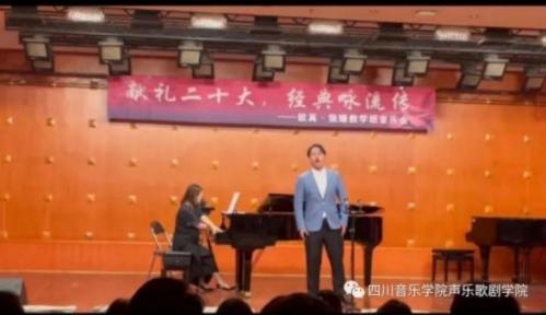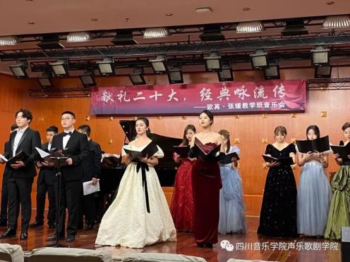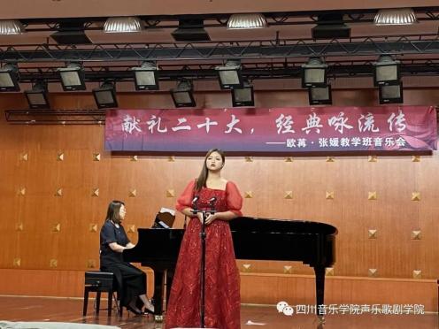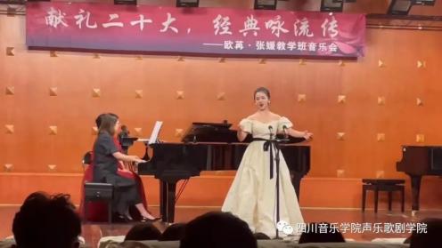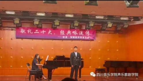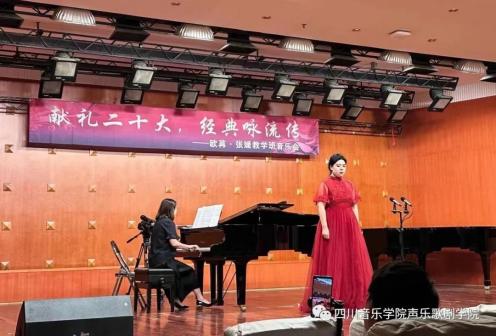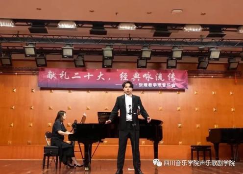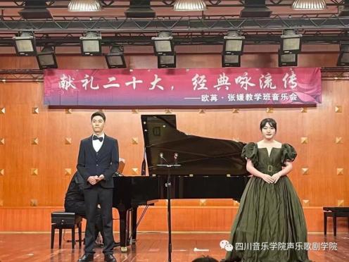 为了热烈庆祝党的⼆⼗⼤胜利召开,贯彻学习、宣传弘扬会议精神,四川⾳乐学院声乐歌剧学院欧苒、张媛两位⽼师于11⽉17⽇晚七点三⼗分在beat365星海⾳乐厅举⾏了“献礼⼆⼗⼤ 经典咏流传”教学班⾳乐会。