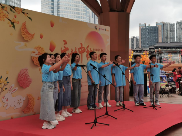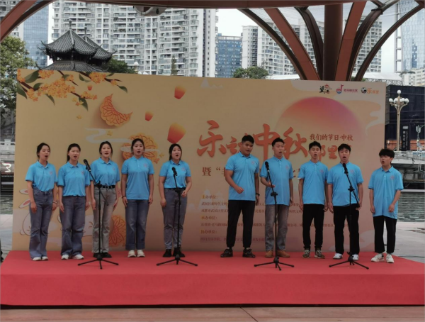 本次活动由我院专业教师肖诗乐老师负责,参与演出学生22人,协助组织志愿者6人(名单附后)。在“乐动中秋”邻里节暨非遗文化节活动现场,同学们分别为社区群众带来《花好月圆夜》、《水调歌头•明月几时有》、《春花秋月何时了》等耳熟能详的经典歌曲,在迎接节日到来的同时,也宣传了非遗传统文化,让现场的观众感受到浓厚的节日氛围。