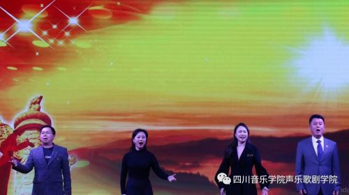 党课结束后,“唱支山歌给党听”文艺汇演正式开始,我院30多名师生和浩旺集团职工代表共同带来了一首首经典励志歌曲,歌颂了我党百余年来带领全国各族人民战胜困难,创造幸福生活的深刻历程,在艺术歌声中,感受家国情怀,衷心为党的初心。最后,谭学胜在大家热情的邀请下,深情演绎了《说句心里话》《军人本色》等作品,将现场的氛围掀起了阵阵高潮。