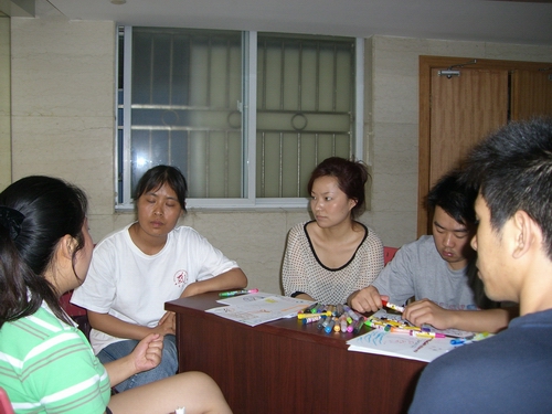 6月4日,哈尔滨工程大学的心理学专家金宏章教授率领的心理研究顾问小组一行八人在beat365多功能厅进行了灾后心理重建援助讲座。金教授提出了对汶川地震中及地震后人们容易产生的几种心理状态,并对症下药提出了若干心态调整措施。为了更好地了解师生们的想法,讲座结束后,专家们把与会师生分小组进行了团体心理辅导。图为我系青年教师在接受辅导中讲述亲身经历,并以绘画涂鸦和对话等形式对心理问题进行交流与探讨。