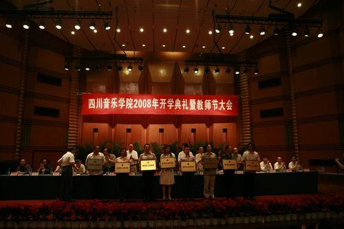 9月10日上午学院举行2008年开学典礼暨教师节大会,我系被评为2007—2008学年度“教书育人先进集体”、“抗震救灾先进集体”光荣称号。 教师节大会上,系主任杨士华教授、党总支书记文雯分别上台领取荣誉奖牌。我系教师唐竹雅副教授在教师节大会上发言,他说:“作为一种职业,把教师当作一种理想与事业的追求,一种挑战自我、完善自我的方式,其间的过程,苦乐自知。是学生们的眼眸给了我力量,是领导关切的话语给了我力量,是同事们的微笑给了我鼓励。真正体会到教师是光荣的、教书是严肃的。”为培育更多更好的艺术人才不懈努力奋斗。