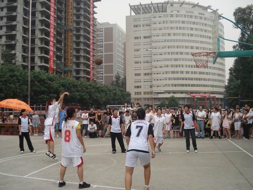 9月21日下午3:00,由学院党委宣传部、学工部、团委、摄影协会共同主办“红五月”校园文化艺术节继续拉开帷幕。 下午3:00, “音超杯”篮球赛在学院操场举行。学生处处长段川、院团委书记李天昊及我系系主任杨士华教授、系办公室副主任李琴、辅导员魏志涛等人在学院操场上与学生们一起观看这场精彩的女子篮球赛。 半决赛上我系05级学生段朝伟英姿飒爽,独占鳌头。05级学生陈珑扬、06级学生严涯、兰家也、王莹、高娜、07级学生黄蓉等人配合默契,表现出色,与国际演艺学院一一角逐。运动场上,运动员们不甘示弱,奋力争先,场外的观众也不停为运动员们呐喊助威。最终我系以22:19分的好成绩拿下决赛资格,决赛将于本月24日下午4:00在学院操场上进行。