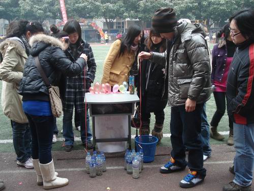 12月31日下午2:00,由我院学工部、团委主办的一年一度的迎新年传统项目——元旦游园活动在我院校本部足球场举行。在系辅导员组织下,学生干部负责三个游戏项目的裁判员。 下午两时许,红色的条幅、五彩缤纷的气球、吉祥的祝福……操场上充满了节日的氛围,为新年增添了欢乐与祥和的气氛。我系三个项目晕头转向、钓鱼、偷袭珍珠港受到全院师生的热情宠爱,纷纷前来参加以换取更多的奖品。 此次大型游园活动的举办,不仅丰富了学生们的大学生活,活跃了学生互动交流的氛围,培养了学生干部自发组织的能力;而且让学生们感受到节日的气氛,体现当代大学生在新的一年里满怀斗志的精神风貌。