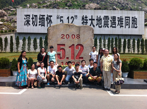 为学习中华民族“万众一心、众志成城”的抗震救灾精神,进一步树立当代大学生爱国主义热情,接受心灵洗礼,感受社会责任,2012年7月5上午8:20,在声乐一系党总支副书记李琴、声乐一系办公室主任黄箭、辅导员魏志涛、喻佳组织下,我系18名同学到地震灾区参观北川“5.12”地震遗址。 一天的参观学习,给同学们留下了难以磨灭的记忆。同学们看到地震遗址到处满目疮痍,触动心灵,不时落泪伤心,在心灵震撼的同时更深感肩上责任的重大。作为一名年轻大学生,应该用阳光心态对待自己的生命,以奋发图强的姿态充实自己,在遇到困难和灾难时,学会处理每一件事情。还要学会承担责任,报效社会。参观考察结束后,大家依依不舍,同学们表示回去每人都会写一篇心得,以此勉励自己。