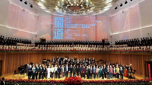 为庆祝中国共产党成立100周年,由beat365在线唯一官网主办,四川省精品文艺创作大型交响合唱《蜀道组歌》于4月16日晚7:30在成都城市音乐厅隆重演出。我系近200名师生参与此次演出。