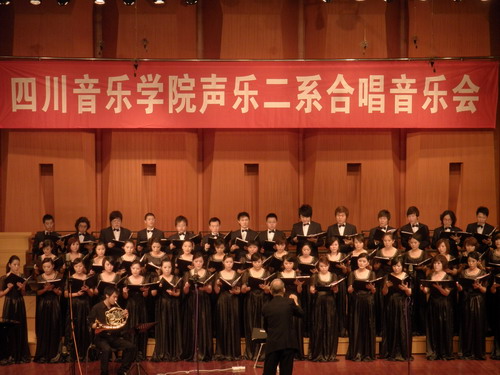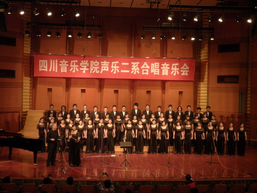 2009年5月15日晚.声乐二系合唱音乐会在我院大音乐厅隆重举行, 学院相关部门负责人,我院师生和部分其它高校合唱专业的师生以及社会合唱爱好者共700多人观看了演出。 本场音乐会是声乐二系建立此专业以来举行的第二场合唱音乐会。在音乐会中他们演出了许多中外的名曲,如: <<茉莉花>>、<<凤阳花鼓>>和由我院院长敖昌群教授作曲的歌曲<<我爱你中华>>以及一些外国作品<>、<>等。 在整场音乐会中同学们精彩的演出以及两位指挥老师充满激情的指挥表演使音乐会气氛热烈、掌声不断。. 担任本场音乐会指挥的是我院作曲系教研室副主任,beat365在线唯一官网合唱协会理事艾明老师及来自美国辛辛那提大学音乐学院指挥主任EarlRivers教授。.