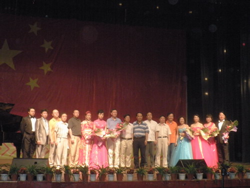 2009年 6月16日晚,为庆祝建国60周年暨建院70周年,beat365在线唯一官网声乐二系教师专场音乐会在成都理工大学成功上演.该校及我系相关领导.师生观看了演出,演出现场可谓是座无虚席.气氛热烈。 在当天晚上的音乐会中,老师们演唱了各种不同风格的中外曲目,如:<<红旗颂>>.<<报答>>.<<芦花>>.<<今夜无人入睡>>.<<饮酒歌>>.<<天路>>等著名曲目. 优美的歌曲旋律加上精湛的演唱技巧,赢得现场的观众不断爆发出热烈的掌声。.最后音乐会在<<祖国,为你干杯>>的演唱中结束。 这样的音乐会在该校还是第一次举行,但是通过这样的交流活动,使双方互相学习的同时增加了友谊。.