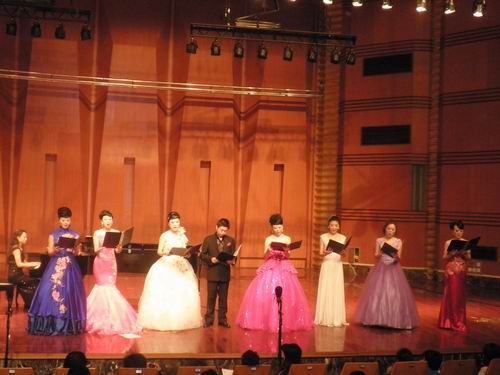 2009年 12月17日晚,声乐二系民族教师声乐专场音乐会在学院大音乐厅上演。这是继2005年后第五场民族音乐会的又一场教师专场汇报﹑交流音乐会。学院相关部门负责人及我院师生700多人观看了这场演出。参加本场音乐会的中青年教师,他们以独唱﹑合唱等多种形式演唱了中国经典名歌,如:<<祖国之恋>>﹑<<千古绝唱 >>﹑<<红土香 >>﹑<<峨嵋酒家 >>等一些脍炙人口的歌曲。本场音乐会中各位老师精彩的演唱使现场的气氛浓浓﹑掌声不断。让在场的各位观众领略了民族声乐的超凡魅力。 最后音乐会在全体演员演唱歌曲<<阿瓦日古里>>、<<采花>>的歌声中结束.这也标志着声乐二系教师音乐会第五年度画上了完美的句号。 此次音乐会是在继本月举行的美声专场音乐会后又一次向观众献上的视听盛宴,达到了锻炼青年教师的目的,同时也展示了声乐二系近一年来的教学水平。 今后,声乐二系还将举办同样的音乐会以呈现给广大师生及各位观众朋友。