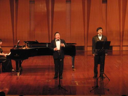 2010年5月18日晚,受我系邀请,旅德著名男高音歌唱家许昌独唱音乐会在我院大音乐厅隆重上演,院长敖昌群等学院相关部门领导及其它高校声乐爱好者600多人观看了演出。 音乐会在许昌和周志良、葛涵两位青年教师的助唱中开场,在本场音乐会中许昌和声乐二系、声乐一系的多位老师共同演唱了多首著名曲目。如<<我孤独地在世上>> 、<< 偷洒一滴泪>、<<今夜无人入睡>>、<<女人善变>>、<<军中女郎>>等曲目.歌唱家许昌在当晚精彩的演出不时博得在场观众阵阵热烈的掌声,特别是在演出结束后观众热情的掌声使得许昌不得不返场四次,在加演男高音经典曲目<<军中女郎>>曲目时,现场观众的热情达到了空前的高涨。 许昌是旅居德国的中国著名男高音歌唱家,1998年毕业于中央音乐学院,1999年德国新声音国际声乐比赛中国赛区第一名,在德国决赛获特别奖;2005年克罗地亚男高音歌剧歌唱比赛第一名;2005年马赛国际声乐比赛第三名;2005年贝里尼国际歌剧声乐比赛第一名。 许昌在欧洲尤其在德国歌剧界享有极高的盛誉,他曾在世界各地举办独唱音乐会和主演了多部歌剧扮演男主角,被认为是中国最优秀的男高音歌唱家之一。