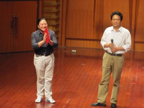 2010年5月27日晚,在继5月18日旅徳男高音歌唱家许昌独唱音乐会成功上演后,许昌大师班音乐会在我院大音乐厅隆重举行,学院院长敖昌群教授、各级部门负责人及我院的师生观看了此次音乐会。 在音乐会开始之前,院长敖昌群教授代表学院对许昌先生颁发了特邀客座教授证书,希望许昌先生为川音的声乐教学事业的发展引路搭桥,传授更科学的声乐教学技艺。 当晚的音乐会分上下场,分别由我院优秀学生和青年教师演唱,在本场音乐会中老师和同学们共同演唱了多首中外著名曲目。如<<为艺术、为爱情>> 、<< 我来了,你们都让开>、<<想亲娘>>、<<故乡是北京>>、<<我心永爱>>等曲目。精彩的演出不时博得在场观众阵阵热烈的掌声。 此次的音乐会的巨大成功是许昌先生在短暂的时间之内教学指导的成果。在大师班过程中,许昌先生的耐心细致、一丝不苟的严谨治学态度,给每一位师生留下了深刻的印象。在教学中,他对意大利美声唱法发声技术的精妙解释、对歌剧咏叹调的人物特征的准确把握、对意大利古典艺术歌曲的演唱风格的深入阐释和对意大利语歌唱发音的精准要求,都使上课的青年教师和旁听的师生们受益匪浅,大大地提升了大家对意大利美声唱法的再认识。所以这次音乐会的成功也是许昌先生教学成功的体现。