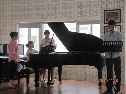 2010年9月16日---9月17日,受我系邀请,旅德著名女高音歌唱家郑鸣和日本钢琴艺术指导江村玲子到我系进行了为期两天的讲学。 郑鸣、2000年毕业于武汉音乐学院后被威斯巴登AI国家歌剧院录用,同时被世界顶尖级歌唱家Eike Schulte收为门徒。 在两天的讲座中,女高音歌唱家郑鸣对学生的演唱进行了悉心的指导,特别针对声乐专业方面的技能技巧、歌曲的语言、风格等相关的专业知识进行了有的放矢的讲解。而日本钢琴艺术指导江村玲子对每位伴奏老师在给学生伴奏的过程中所出现的问题提出了很好的指导和见解。在两天的讲学中,师生们对她们的精彩教学不时报以热烈的掌声。