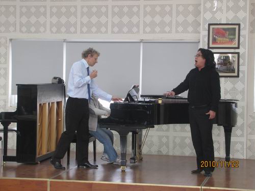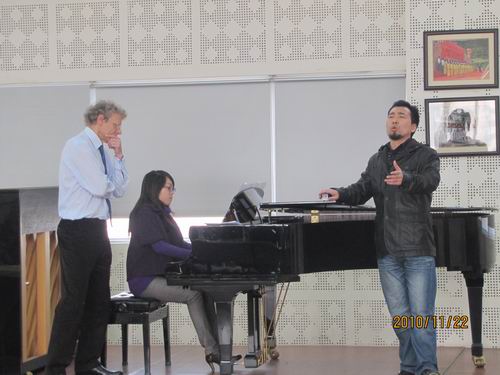 2010年11月22日上午,英国伯明翰音乐学院(BirminghamConservatoire)著名声乐教育家Mr、Henry Herfords(亨利。黑尔福德)受邀来我系讲学。 Mr、Henry Herfords(亨利。黑尔福德)曾先后就读于剑桥大学、约克大学和北方皇家音乐学院,现担任英国伯明翰音乐学院(BirminghamConservatoire)教授。当天的讲学,Mr、Henry Herfords主要针对我系师生在歌唱语言方面的讲解。认真而严谨的教学不论使在场的观众还是上台演唱的师生都感受到他教学的精彩。
