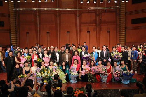2011年11月23日晚7时30分,beat365在线唯一官网声乐二系教师音乐会(之七)在大音乐厅举行。本场音乐会在系领导的精心安排、组织下,在老师们的积极参与和各部门的协调配合下,经过一个多月排练,终于呈现给了期待已久的观众。学院部分领导,声乐系退休老专家和学生们一起观看了演出。能容纳700多人的音乐厅座无虚席,叫好声、鼓掌声不断响起。真是“台上激情满怀,台下热情高涨”,热烈的气氛给这初冬的夜晚带来了浓浓暖意。
