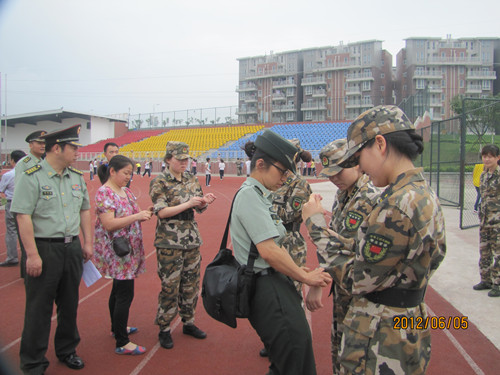 声乐二系参加省军区《大学生军训之歌》MTV拍摄 6月5日,我系部分学生在系总支书记张小丁老师的带领下赴德阳罗江参加了四川省军区学生军训工作办公室组织、策划的《大学生军训之歌》MTV拍摄。 该片意在反映新时期大学生的军训风采,该歌词是全国征集而来,曲作者系我院教务处副处长文锋教授。其创意受到解放军总参首长的好评和肯定,并在即将召开的全国高等学校学生军训现场会上展播,总参部还将向全国推广。 四川省军区学生军训工作办公室主任谢辉容大校亲自率领其办公室的参谋和官兵到现场督导,不仅为同学们提供了良好的装备和生活安排,还在现场不断为同学们加油鼓劲。同学们在拍摄过程中头顶烈日,汗流浃背,非常投入。 此次拍摄,不仅增加了同学们艺术实践经验,也让同学们再一次受到了部队严明的军事纪律和国防意识的教育。同时,也进一步密切了我院与四川省军区学生军训工作办公室官兵们的亲密关系。