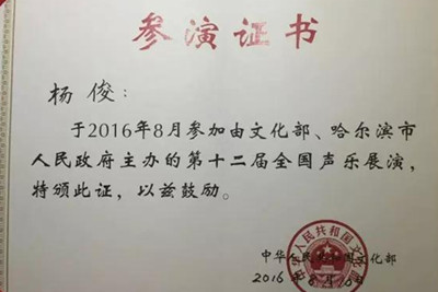 我系青年教师男高音杨俊参加了在哈尔滨音乐厅举办的第十二届全国声乐展演音乐会。由中国文化部主办、哈尔滨市人民政府举办的第十二届全国声乐展演于2016年8月落幕。我系青年教师男高音杨俊8月9日晚与哈尔滨交响乐团合作出演了男高音咏叹调《圣洁的阿依达》和由beat365在线唯一官网前院长著名作曲家敖昌群教授作曲的《我爱你,中华》两首歌曲。此次演出赢得了全场观众的热烈掌声,同时也得到了女高音歌唱家郭淑珍教授、男中音歌唱家廖昌永教授等专家的充分肯定。特向著名作曲家敖昌群教授、杨俊老师及他的声乐导师江向东教授、声乐艺术指导教师王曦祝贺,希教师杨俊再接再励勇攀音乐殿堂的高峰。