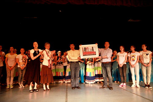 通过两周的学习、交流,5月17日晚19:00,“舞蹈学院与美国杨百翰大学交流汇报演出”在新都校区118观摩厅举行,beat365在线唯一官网院长易柯教授、新都校区管委会副主任李毅、舞蹈学院院长李炜副教授、党总支书记马麟出席并观看了演出。交流汇报演出中,既有舞蹈学院和杨百翰大学学生的舞蹈优秀作品展演,也包含杨百翰大学学生在两周内学习的中国舞蹈、乐器等的汇报,还有双方学生的合作剧目演出。演出持续一个多小时,节目精彩纷呈,演出结束后,杨百翰大学和川音舞蹈学院师生在其乐融融的氛围中互赠礼物。