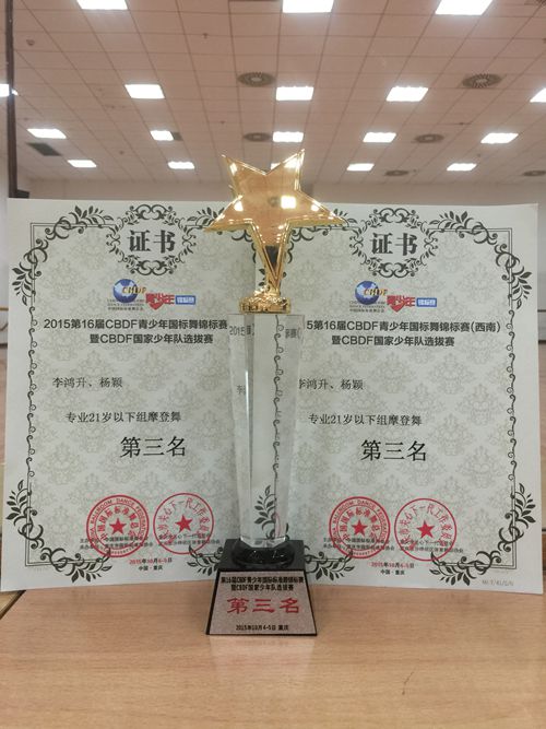 舞蹈学院国际标准舞专业学生参加10月4日—5日在重庆举行的2015第十六届CBDF青少年国际锦标赛(西南)暨CBDF国家少年队选拔赛,学生李鸿升、杨颖组合和王立新、张梦琪组合分别获专业21岁以下摩登舞第三名、第四名。
