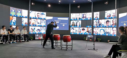 学生再远,这里也是老师的主场。巩伟老师借助全景教室能够营造真实声场,同线下学生进行互动教学,线下的学生犹如身入其境,学习到打击乐基本技法。在全景教室中,沉浸式体验中,无论是对手指、手腕、手臂的动作示范,还是在授课中强调:点状与线状的音符;气息与律动的交织;轻重和缓急的控制等,线上线下的学生都能多维看到、清晰听到巩伟老师的讲解。