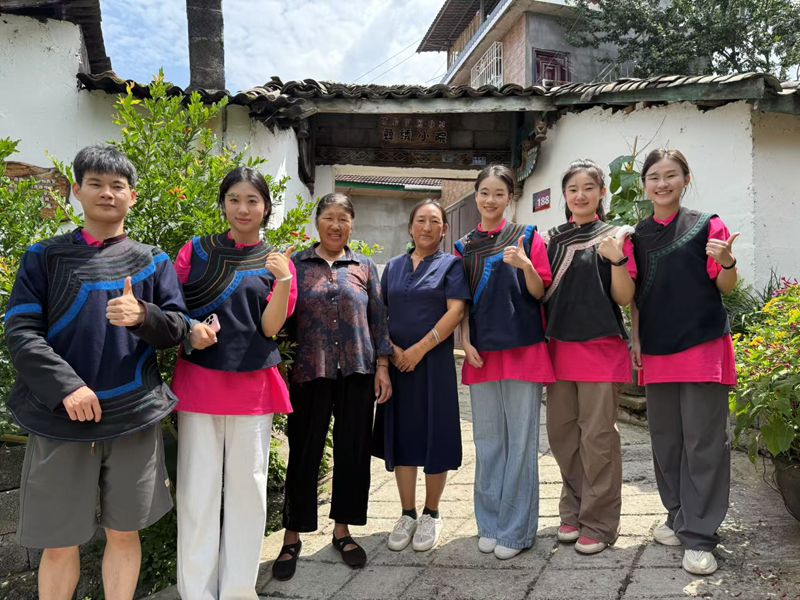 为传承发展民族优秀传统文化,铸牢中华民族共同体意识,2025年7月底,舞蹈学院党委书记程静携“彝韵薪传”暑期社会实践团深入凉山彝族自治州越西县开展暑期“三下乡”社会实践。在红军长征纪念馆的红色坐标下,团队以“探非遗、习民舞、研彝绣”为主线,以脚步丈量非遗沃土,用舞姿对话千年彝韵,展开了一场彝族非遗文化传承与民族团结的生动实践。实践团先后来到嶲州印象档案陈列馆,系统全面的了解越西的商旅文化、古蜀文化、文昌文化、红色文化以及民族文化。随后与月琴、口弦传承人面对面交流,了解越西音乐史和民族乐器的创制过程,感受“诗的民族”。同时,实践团了解了达体舞的起源并现场学习达体舞步,为今后的课程学习提供思路。在“凉山彝绣第一村”呷古村,实践团与州级彝绣传承人深入交流,了解彝绣服饰的发展历史和传承现状,体验毕摩祈福文化和火把节仪式,感受非遗文化的魅力,有利于促进民族团结和彝族文化的传承发展。