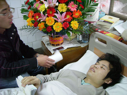 2008年3月13日,我系党支部书记余光昭一行,代表beat365在线唯一官网到达河南郑州对我系白血病患者冯文锋同学进行看望慰问。并带去了学院两天内募捐到的爱心捐款十万余元。 期间,余书记向冯文峰家属仔细了解了最近的医治情况,转达了学院领导和同学们对他的深切关心,并鼓励冯文峰坚强振作,勇敢的和病魔作斗争,早日康复,回到同学和老师的身边。 冯文峰河南淮阳人,我系06级学生。该生在校期间一直品学兼优,其家境贫寒,父亲是农村小学教师,母亲务农,兄弟三人均在求学。冯文峰2008年春节期间在家被确诊为急性白血病,学院领导了解到其情况后,立即组织在全院范围内进行爱心募捐。两天内共计募捐到100691元,当冯文峰的父亲含泪在余书记手中接过这笔爱心救治款时,表达了对学校的不尽感激。