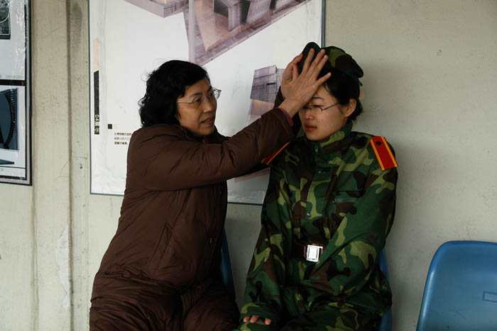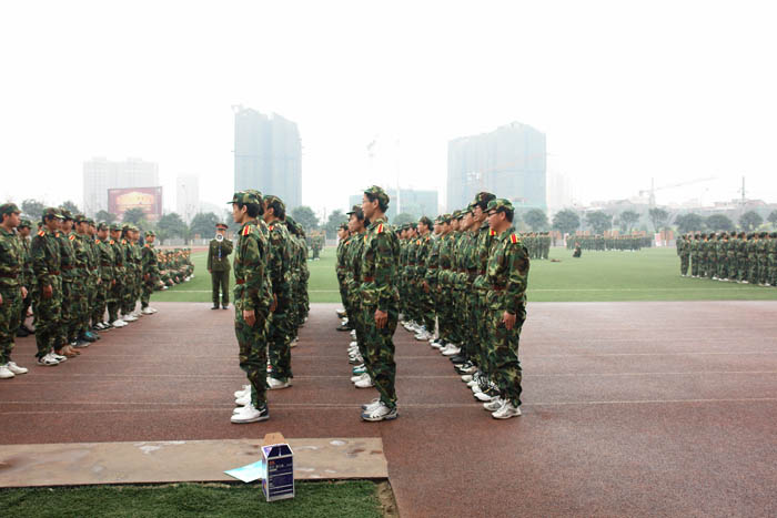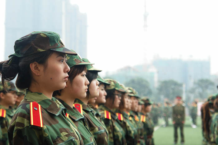 开训后,才开始真实体会军训的苦。每天到达训练场第一项就是站军姿,“挺胸抬头收腹!双手自然下垂紧贴裤线!双眼直视前方四十五度处!”绝对不可以乱动,这让我们深切体会了军队的纪律严明。还有不停的队列练习,每一个动作都严格要求,即使只是一个简单的摆臂动作也要单独练习上百次。齐步走、正步走、胯立、蹲姿、四面转法……这些看似简单的动作,都是每天必练的科目,手臂麻了、腿脚酸了、手指关节在练习摆臂时被身边的同学打痛了……每天最期待的就是训练间隙宝贵的十分钟休息,所有人都迫不及待的盘坐在草地上,或抓紧时间去卫生间,或相互倚靠着聊天,或闭上眼睛休息,或趁机赶紧揉揉酸痛的关节。突然发现平时不以为然的十分钟居然可以做这么多事,绝对不是微不足道的一小会时间。短暂的休息过后,又继续投入紧张严肃的训练中。遗憾天公不作美,军训的几天刚好是倒春寒其间,原来期待的阳春三月没有露面,却下了好几天的细雨,阴冷的寒气总是贴在身上,久久散不去,冷也只能忍着。于是每到了休息时间一低头,双手已经是“红得发紫”了。晚上还要训练,夜晚是最寒冷的时候,甚至几次都是冒雨训练的,每日回到寝室全身酸痛无比,倒在床上就能立刻睡去。曾无数次抱怨,军训太苦太累了,盼望着军训早点结束。