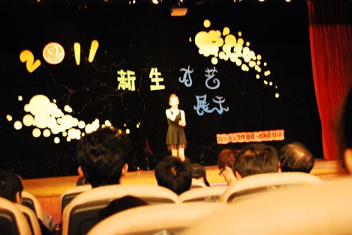昨晚由院团委和我系联合主办的2011级新生才艺展示晚会,在新都校区小音乐厅演出。本台晚会的19个节目,全部由我系2011级戏剧影视表演专业和音乐剧表演专业的新生自己编排表演,内容多样,形式新颖,充分展现了他们对艺术的热爱和登台演出的激情,受到了观看演出的系领导、全体老师和高年级学生的一致称赞。 演出结束后,2011级的新生发出了这样的心声“来到川音,就步入了艺术的殿堂,永不后悔!”