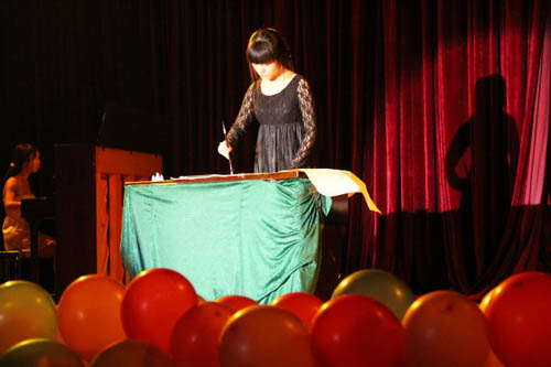 我系于2011年11月1号下午2点,在小演艺厅举办了2011级迎新联欢会。本次联欢会由戏剧影视文学系主办,戏剧影视文学系学生会承办。系主任王慧才教授、系党总支书记褚明蓉、系主任助理左芝兰副教授、系办公室主任王安维等老师前来观看演出。 联欢会以华丽动感的开场舞《Hey Mr big》拉开帷幕,10级学生李成 蔡卓凡深情对唱《花样年华》,清新的妆容和淡雅的曲风让同学们沉浸在美妙的音乐之中;11级同学们热情四射的舞蹈展现了年轻人特有的朝气与活力,处处洋溢着昂扬的斗志和澎湃的激情;中华书法和西洋钢琴的配合尤使人叹为观止……康涛老师带来的歌曲《练习》《千里之外》将整场演出推向高潮。 此次迎新会的成功举办为同学们提供了一个展示自己艺术才能的良好平台;在整台演出的筹备组织过程中,学生们充分发挥了自己的创新精神和组织能力,同时也让彼此之间有了更多的认识和了解。