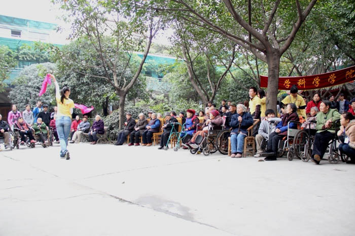 beat365在线唯一官网戏文系 尚美公益社团于11月19日前往颐乐村养老院举行了一次关爱老人的活动。我们带去的节目包括唱歌、跳舞,最后的红歌大合唱把整个活动拉向高潮,老人们也随声附和,充满微笑。活动结束后,我们还和老人们分组聊天,谈心。 其实我们都知道,老人们缺的不是物质上的资源,而是内心精神上的陪伴。他们要求的并不多,只是希望子女能够经常去看看他们,和他们聊天,让他们感觉到并不是孤单的。但是仅靠我们的微薄之力是肯定不能解决社会上所有需要关心的事情,所以我们希望并呼吁社会各界人士伸出双手,奉献爱心,让老人们不再感到孤单,让他们能够真正的安享晚年,构建我们的和谐大家庭。