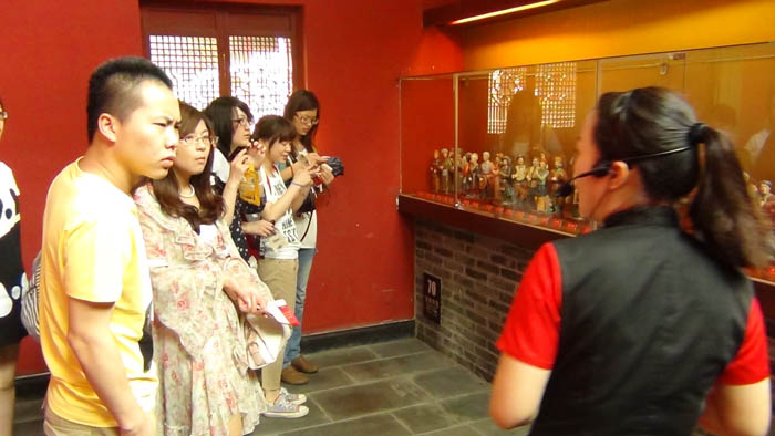 到达目的地后,同学们分成三组由解说员带队进行参观游览。建川博物馆由樊建川先生创建,坐落于大邑县安仁古镇,已建成抗战、红色年代、地震、民俗四大系列展馆。由于时间紧,我们参观了中流砥柱馆、中国壮士群雕广场、国防兵器馆、三寸金莲文物陈列馆、5•12抗震救灾纪念馆等展馆。