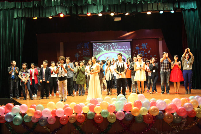 联欢会开场秀是由2012级一班全体同学带来的集体舞《Nobody》,整齐、有力的舞姿洋溢着青春的活力。喜迎十八大,余桂芝同学一首《唱支山歌给党听》深情表达了对党的热爱与崇敬。2012级二班集体小品《新白蛇传》和三班音乐短剧《明天会更好》彰显了同学们的创新与活力。由同学们自编自导自演的小品《甄嬛传》更是赢得老师和同学的称赞与掌声。歌曲《好兄弟》、《高原红》,舞蹈《Poker Face》、《Only One》、《Telephone》等更是赢得全场欢呼不断。由系学生会组织部带来的《戏文好声音》,宣传部的《配乐诗表演》等节目则体现了集体的力量。文体部的《概念T台秀》展现了床单不一样的风采与设计师的环保概念,全场掌声雷动,现场气氛达至高潮。最后,联欢会在学生会全体成员《相亲相爱》的欢快歌声中圆满落幕。