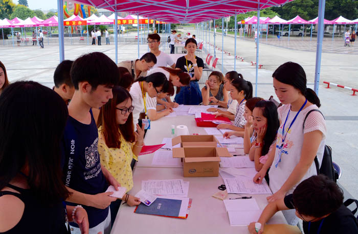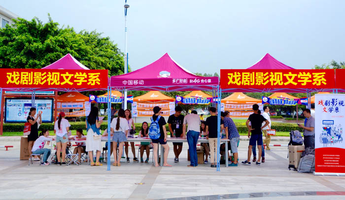 2015年9月7日—9月8日,我系在喷泉广场展开了为期两天的迎新工作,以周密的安排、热情的服务,迎来了2015级的新同学。 我系对此次迎新工作高度重视,党总支副书记温妮,系副主任左芝兰副教授亲自安排并参与,李晨玉、杨哲老师全程负责。 在此次的迎新活动中,学生干部和志愿者们按照系上的分工安排,热情周到、默契配合,以饱满的热情,贴心的服务让新生在陌生的环境中找到了温暖。志愿者们不仅一对一带领新生办理入学手续、熟悉校园环境,还为新生和家长们送上了矿泉水,让新生和家长感受到来自我系师生的关心。 我系用“一对一”的贴心服务告诉我们的新同学:欢迎你们来到温暖和谐的戏文系,开启人生新的篇章。