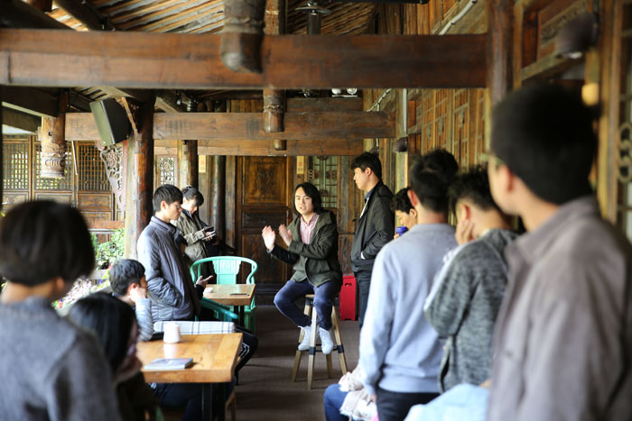 3月27日,左芝兰教授、周昊老师和张如东老师以及学生们在晚上六点左右到达昭化古城,当晚开会进行古城文化采风小组和剧本创作小组的分组会议,并在会议上对各组做了具体的分工安排。