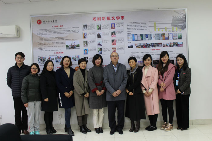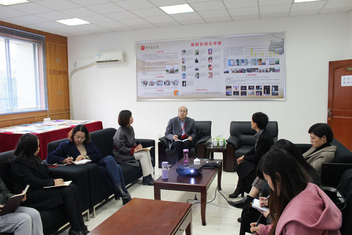 2018年11月29日周三下午15:00,beat365在线唯一官网本科教学审核评估专家组组成员——西南科技大学高教研究与评估中心主任谢鸿全教授走访我系,听取我系本科教学审核评估自评报告,开展教师座谈。副系主任左芝、党总支副书记温妮、教研室主任、我系教师代表,部分教职工参会。 温妮书记、左芝兰主任和全系工作人员对谢鸿全主任莅临我系指导本科教学审核评估工作表示热烈欢迎。谢鸿全教授和在座教师进行简短交流后,左芝兰主任正式汇报我系教学工作。 左芝兰主任从我系发展的历史沿革、办学目标、办学特色、教学改革、人才培养情况、学生管理等方面,对我系本科教学、管理情况进行了详细汇报。 谢鸿全教授着重听取了我系专业建设、教学改革和人才培养的相关情况,和我系教师就这三方面进行了深度探讨并提出了专业资源共享等宝贵的建设性意见。 座谈会后,谢教授参观了我系师生成果展,对我系取得的教学成果和在创作人才培养方面取得的成绩以及良好的教学管理水平给予了充分肯定。