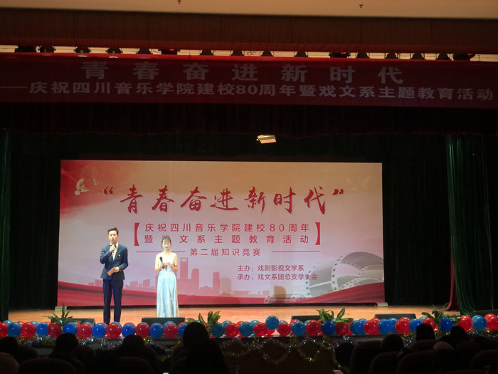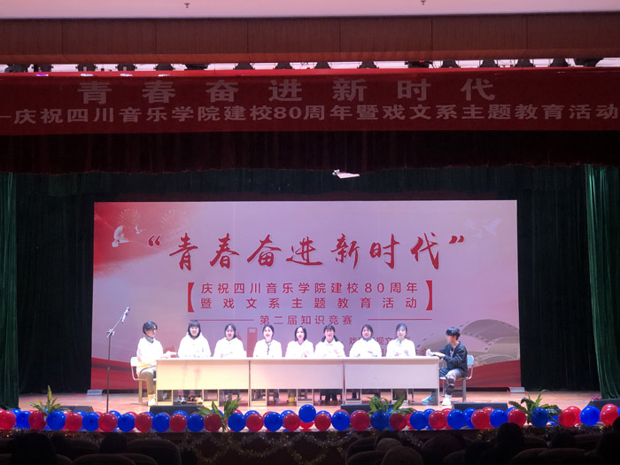 为庆祝学校建校八十周年,结合“不忘初心”主题教育学习活动,我系于11月20日下午17:00在新都校区小音乐厅开展“青春奋进新时代”第二届知识竞赛活动,我系党总支书记温妮、专业教师、辅导员及全体学生共同参加。本次活动以文艺汇演的形式庆祝母校建校80周年,以全民知识竞赛的形式开展“不忘初心”主题教育学习活动。此次的活动不仅是全体师生用最真挚的祝福表达对母校的热爱之情,更是一次生动的教育学习活动。我系师生会不忘初心,牢记使命,为母校的辉煌明天继续努力前行。