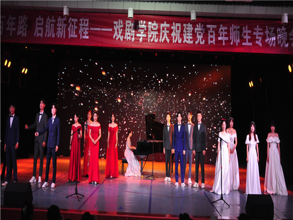 在中国共产党成立100周年之际,我院师生通过综合专场晚会的形式赞颂党的风华岁月,献礼建党百年。接下来,我院将不断创新党史学习教育的形式,用党的奋斗历程和伟大精神,引导广大师生坚定不移听党话,跟党走,为新时代建设社会主义现代化强国而不懈奋斗。