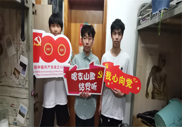 我院学生党员和入党积极分子在收看了直播后也同样热血沸腾,纷纷在我院学生党员和积极分子微信群中发表心中感言。同学们也手拿建党百年标语牌祝贺我党百年华诞。