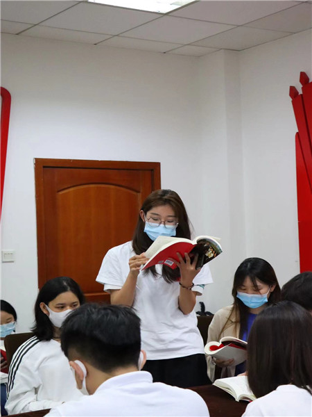 在听完同学们的交流分享后,分团委书记罗景莎老师就习近平总书记与大学生朋友们之间交往、交流、交心的互动场景,分享了自己的心得与体会,号召同学们要认真学习和弘扬习近平总书记的实干精神,将工作本领和服务热情投入到“我为同学做件事”的具体实践中去。青年团学干部要带头学习,要营造浓厚的学习氛围;要着力学深悟透,带着特殊感情认真学习;要紧密结合实际,强化成果转化运用。