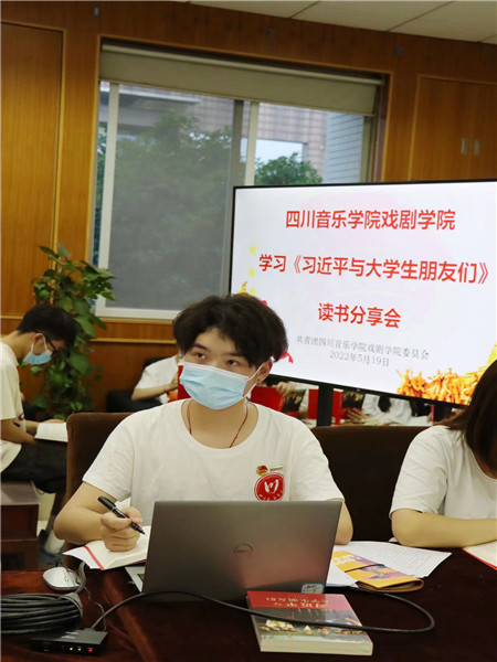 为深入贯彻学习习近平新时代中国特色社会主义思想,进一步落实开展“喜迎二十大、永远跟党走、奋进新征程”主题教育实践活动要求,真切感受习近平总书记对青年一代的亲切关怀和殷切盼望。5月19日下午,戏剧学院分团委组织开展《习近平与大学生朋友们》采访实录读书分享会。我院分团委老师、学生会干部、优秀共青团员、团支书代表参加了此次活动。