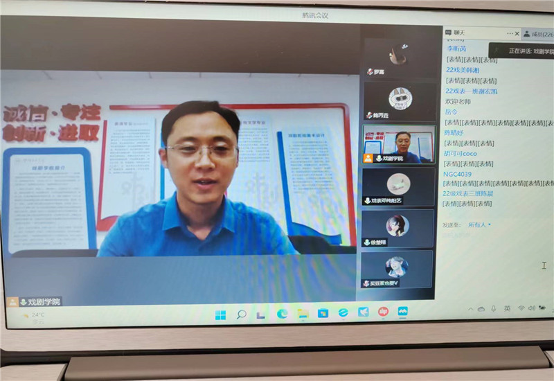 9月21日下午14点,戏剧学院召开了2022级新生线上见面会,我院班子成员、行政、辅导员老师以及2022级全体新生参加了会议,此次会议通过腾讯视频线上交流的形式开展,会议由戏剧学院副院长李艺梅教授主持。