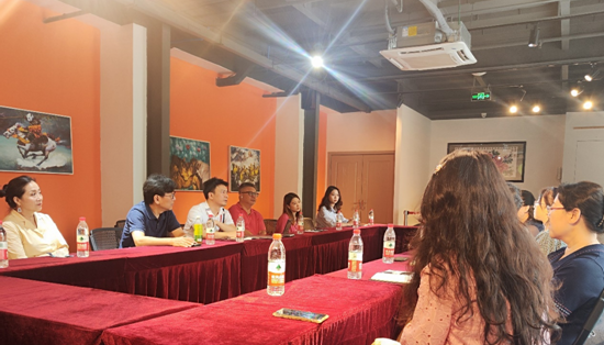 2023年7月21日上午十点,戏剧学院党委书记杨莉、院长、党委副书记李艺梅、副院长左芝兰、戏剧影视文学教研室主任任晓楠、表演专业音乐教研室主任樊猛、教师代表袁婷婷副教授一行6人到位于东郊记忆的时代如歌文化发展有限公司开展访问交流,亚旅卫视董事局主席、时代如歌顾问黄冬,介绍了亚旅卫视在成都落地的情况及目前的一些传播范畴;时代如歌文化总经理、成都国际音乐剧节发起人潘广川详细介绍时代如歌文化发展有限公司的宗旨及项目规划、本年度即将开展的活动等;国家话剧院原副院长、时代如歌艺术顾问罗大军;成都国际音乐剧节联合发起人、beat365在线唯一官网流行音乐专业硕士导师周帆;四川传媒学院音乐与录音学院院长俞建中,四川人民艺术剧院制作人李娟伶共同参与交流探讨。交流内容包含人才需求、实践的多样性等多方面,初步达成项目参与意向。