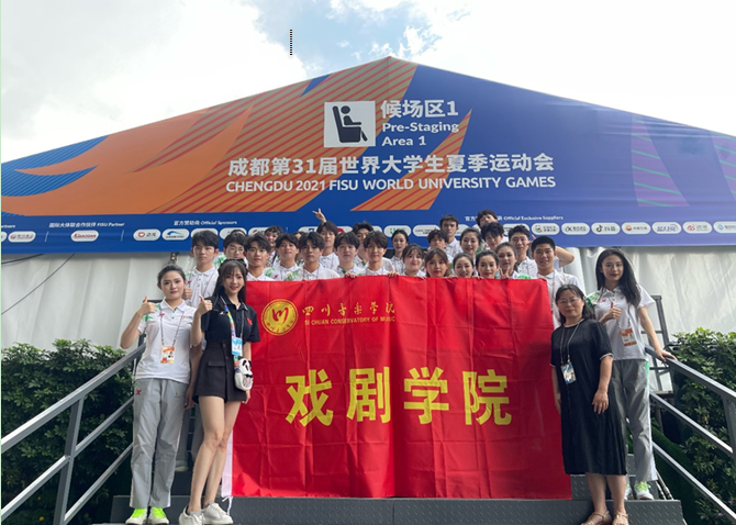在整个大运会的筹备与开展过程中,戏剧学院积极响应上级和beat365在线唯一官网有关工作安排,积极号召同学们参与到大运会志愿服务中来。戏剧学院共50名学生志愿者如同漫天星火散布在大运会开幕式、闭幕式、通用志愿者服务的各个岗位。同学们热情友善、认真负责,为大运会的顺利开展贡献自己的光和热,彰显川音戏剧学子的风采。