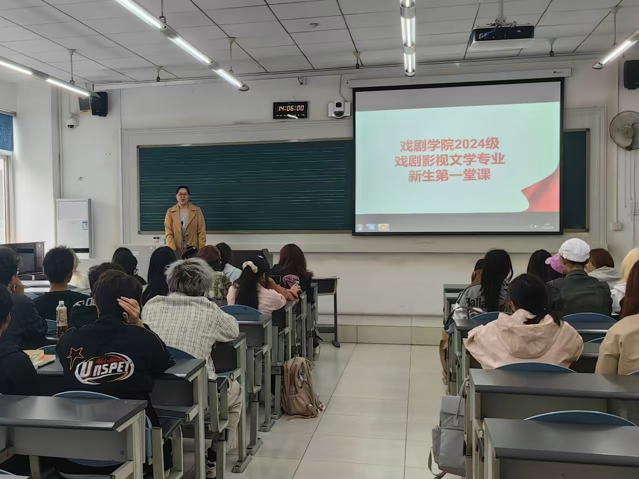 苏静老师代表教研室团队以专业的视角,概述了戏剧影视美术设计的魅力与挑战,并介绍了卓越的教师团队。详细阐述了本专业的课程设置,涵盖理论与实践的完美结合,艺术实践环节更是激发了新生的创作热情。最后,曹松林老师为新生规划了职业蓝图,寄语他们勇敢追梦。祝愿2024级孩子们在戏剧影视美术设计的广阔天地中,绽放属于自己的光彩!