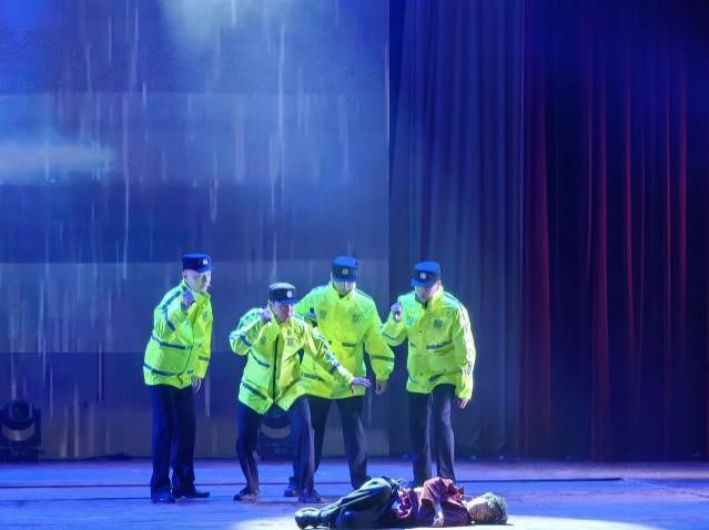 演出当天,戏剧学院同学们通过精湛的台词功底和细腻的角色塑造,将公安干警在打击犯罪、抢险救灾、服务民生中的真实事迹搬上舞台。富有张力的肢体语言,为剧目注入艺术感染力。整场演出高潮迭起,观众掌声不断,充分展现了警民同心、共筑平安的深厚情谊。