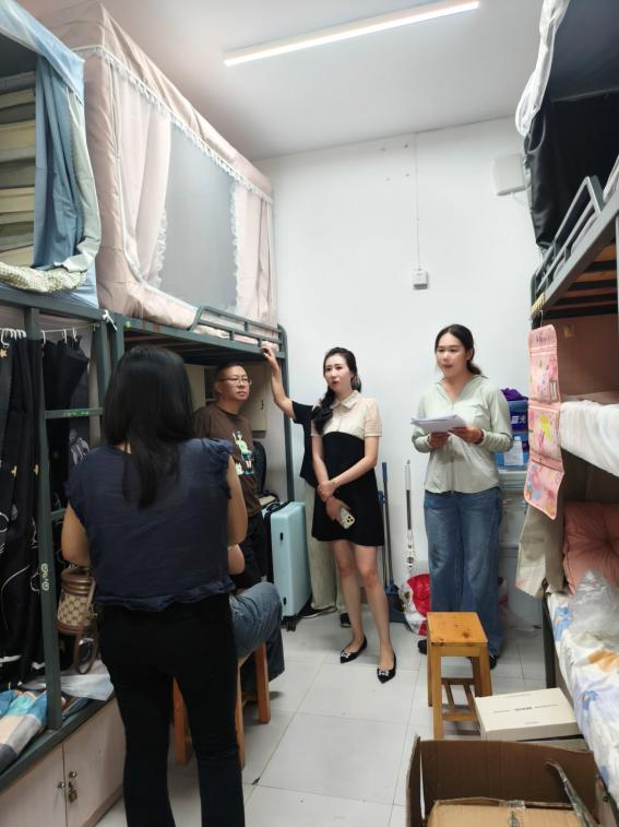 新生入住寝室后,党委副书记陈玮及辅导员们一同前往学生寝室,实地查看新生住宿环境,将关怀送到“家门口”。每到一间寝室,陈书记都仔细询问新生是否适应新环境,检查水电、家具使用情况,叮嘱大家注意用电安全、保持寝室整洁,提醒来自不同地区的同学相互包容、互帮互助,尽快建立融洽的室友关系,遇到生活难题或心理困惑要及时联系辅导员,学院会全力为大家解决后顾之忧,让家长放心、让学生暖心。亲切的话语、细致的关怀,让初入校园的新生们倍感温暖,也拉近了与学院的距离。