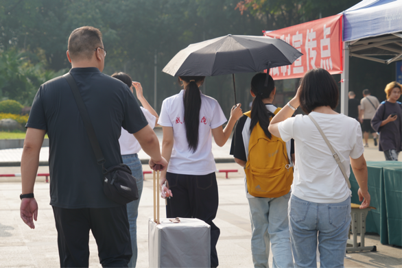 迎新现场,学院领导十分重视,党委书记胡辉虽因外出参加培训无法亲临现场,但始终心系新生,通过工作群实时了解迎新进展,反复叮嘱工作人员务必细致做好新生接待、需求响应等工作,确保每位新生都能感受到学院的关怀与温暖。院长李艺梅、党委副书记陈玮亲临现场,与新生及家长亲切交谈,询问入学感受和需求,鼓励新生珍惜大学时光,努力提升专业素养。