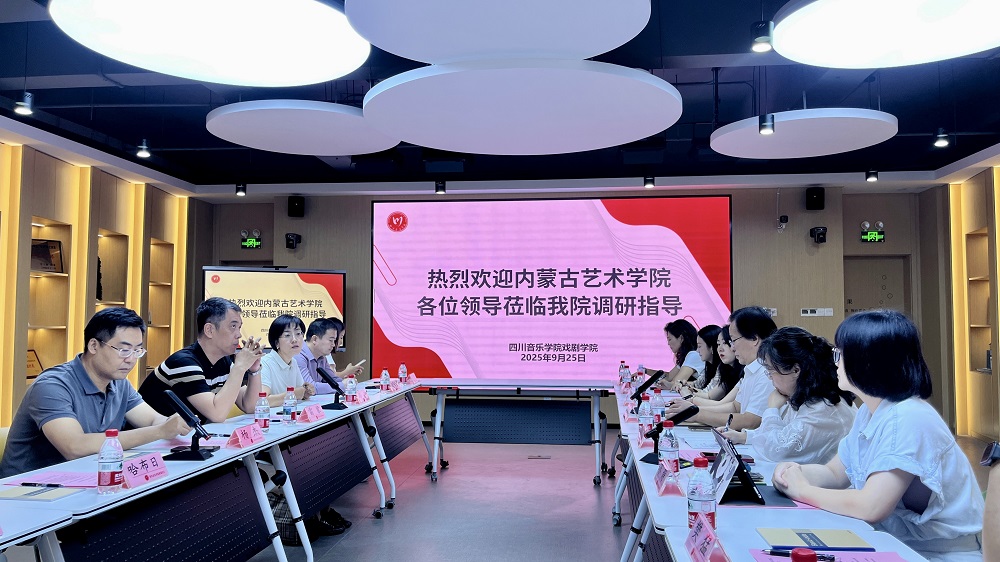 为深化校际合作、互鉴办学经验,助力戏剧影视学科高质量发展,2025年9月25日,内蒙古艺术学院戏剧影视学院党总支书记雷蒙、院长路广,舞蹈学院党总支书记杨杰等一行7人莅临beat365在线唯一官网新都校区,与我院开展调研交流活动。活动由我院院长助理苏静主持,党委书记胡辉,党委副书记、院长李艺梅,党委副书记、纪委书记陈玮以及各教研室主任、骨干教师参会。